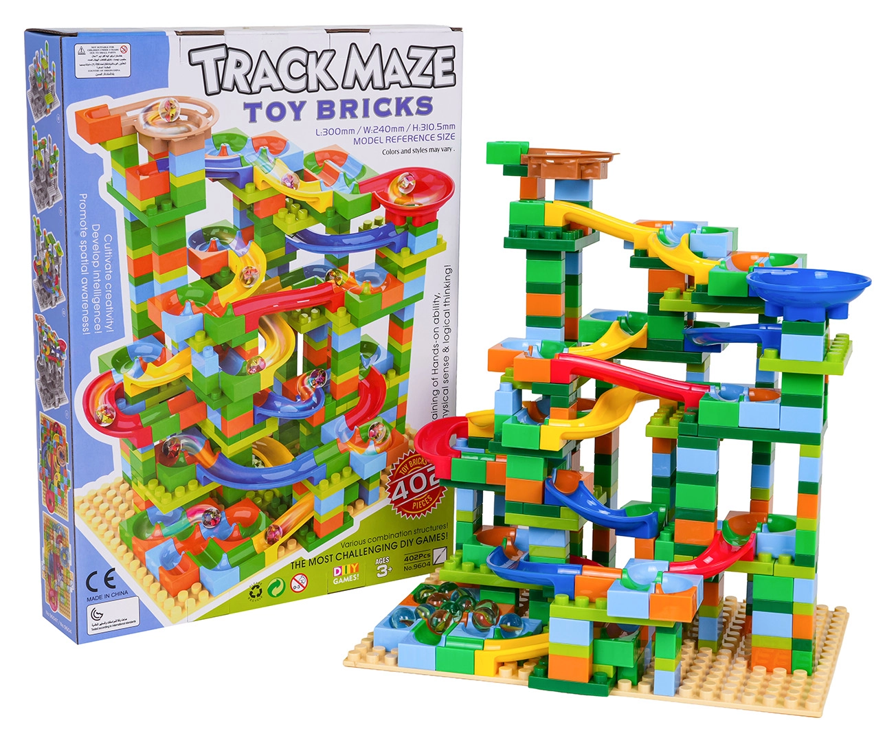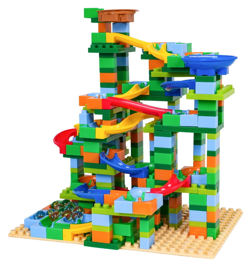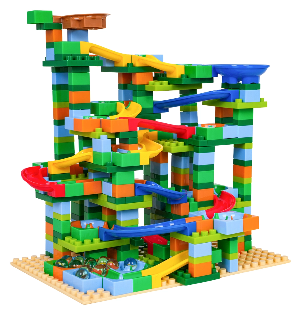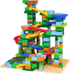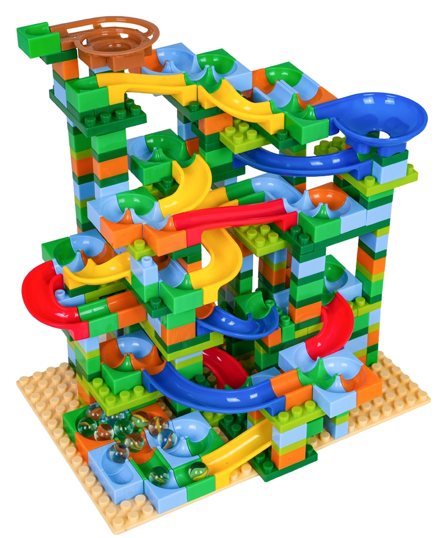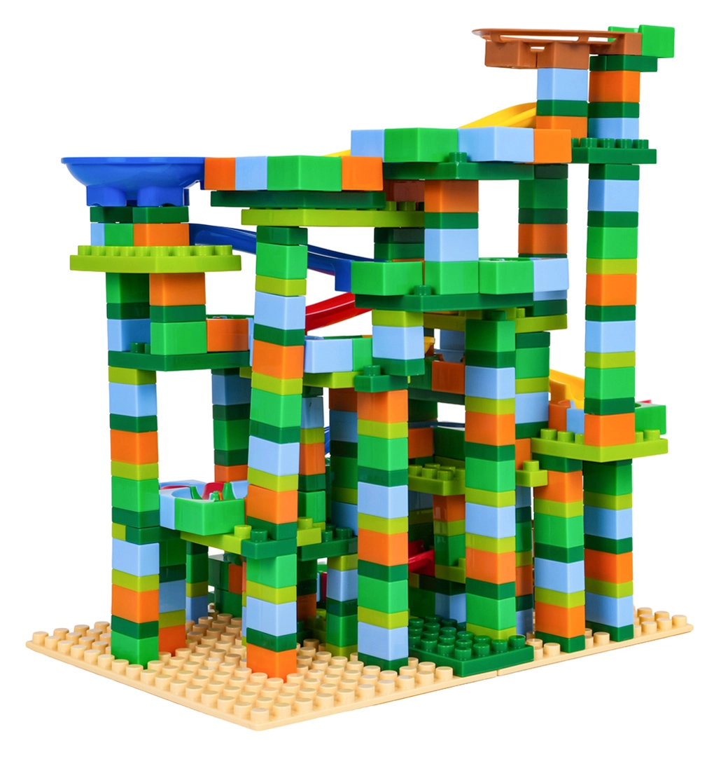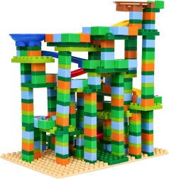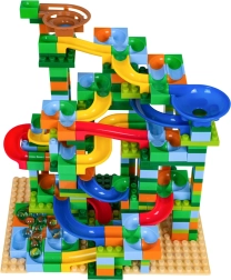 Сглобете собствено цветно мраморно трасе и наблюдавайте как топчетата преминават през завои, фунии и спускания. Благодарение на богатия сет от 402 елемента ще построите безброй варианти, а децата естествено тренират координация око–ръка и логическо мислене.
