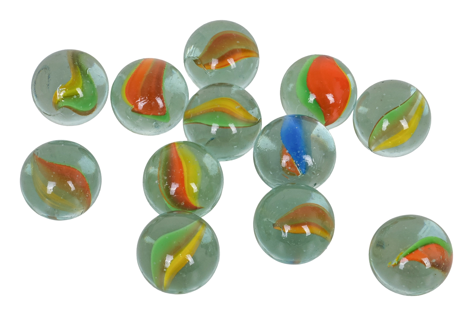 В комплекта са включени 12 стъклени топчета с цветни шарки – идеални за състезания, времеви предизвикателства и експерименти с гравитацията.
