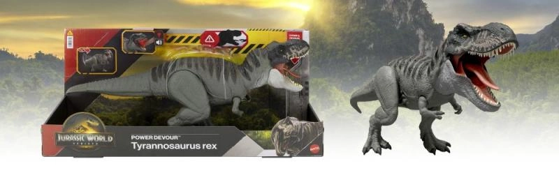 Изживейте екшън забавление с емблематичния T‑Rex от JURASSIC WORLD. Този голям 53 cm модел предлага непрекъснато захапване, светлинни ефекти и зловещи ревове. С едно натискане на езиковия спусък T‑Rex изревава, а при задържане се активира дива последователност на захапване със звук и светлина. С подвижна опашка сменя атаките от различни посоки. Идеален подарък за деца от 4 години и страхотен допълнителен елемент към дигиталната колекция в приложението Jurassic World Play.