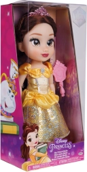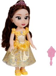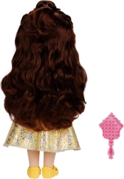 Куклата Бел с височина 35 см представя любимата принцеса от „Красавицата и Звярът“ в сияен облик. Блестящата жълта рокля, детайлното лице и дългата кестенява коса вдъхновяват за разказване на истории, ресане и стилизиране.