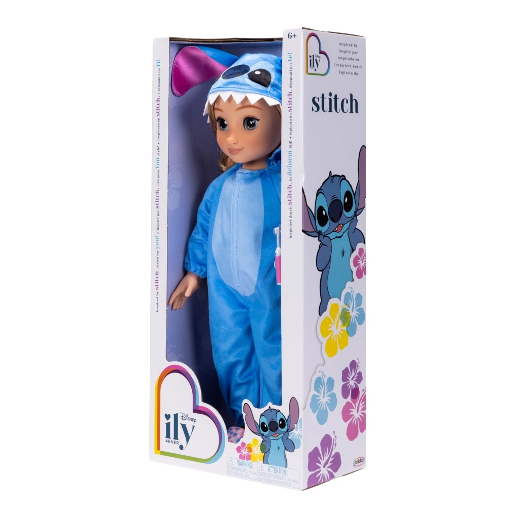 Открийте магията на Disney с куклата Disney ily 4EVER в стил Stitch. Куклата има реалистична визия, дълга вълниста коса, подходяща за разресване, и детайлно изрисувано лице. Синият гащеризон с качулка и големи ушички я превръща в звездата на всяка детска стая за игра.