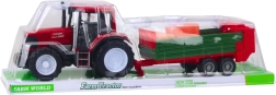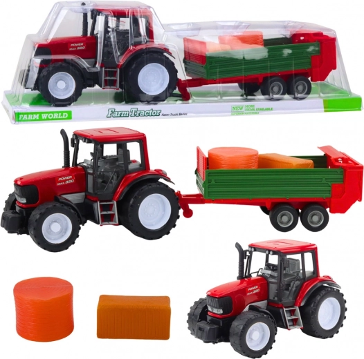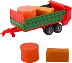 Открийте здрав фермерски комплект, който ще зарадва малките любители на селския живот. Детайлно изработеният червен трактор с големи колела и свалящо се зелено ремарке реалистично наподобява истински селскостопански машини. В комплекта има и бали сено, които могат да се товарят, превозват и разтоварват.