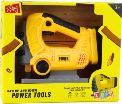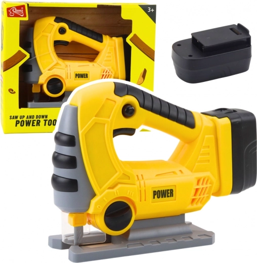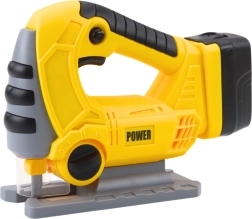 Този реалистичен акумулаторен прободен трион за деца в жълто‑черна цветова комбинация изглежда като истински инструмент и насърчава ролевата и творческата игра. При включване се активират LED ефекти и автентичен звук на рязане, които засилват изживяването от играта.