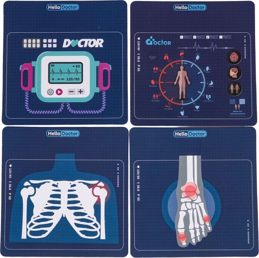 Сърдечен ритъм, измерване на температура, звук от томограф и аларма. Подсветено сърчице на дисплея и сменяеми снимки на ЕКГ/томограф за още по-реалистична игра.