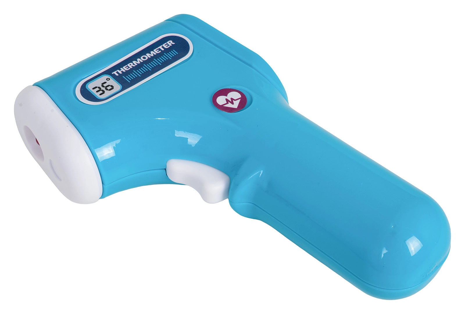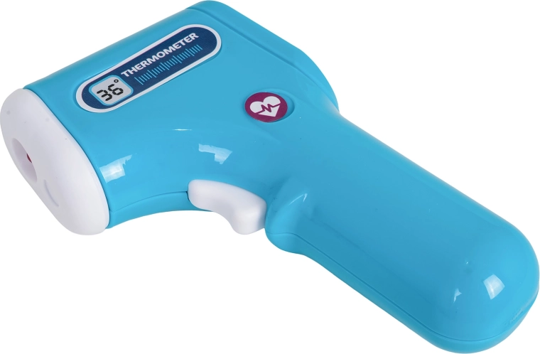 Панелът на монитора се захранва с 2 × AA 1,5 V (не са включени). Термометърът се захранва с 2 × LR44 (включени). Качествена пластмасова изработка в ярки цветове и заоблени форми – идеални за безопасна детска игра.