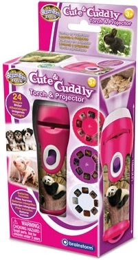 Прожектирайте сладки изображения на котенца, кученца, зайчета, понита, панди и други животинки с ширина до приблизително един метър. В комплекта ще намерите 3 сменяеми диска с общо 24 цветни фотографии. Достатъчно е да отворите пластмасовото капаче, да поставите избрания диск и с неговото завъртане да сменяте кадрите. Остротата лесно се настройва чрез завъртане на главата на обектива.