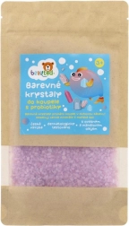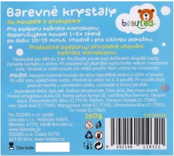 Цветните кристали за вана превръщат ежедневната хигиена в радостен ритуал. След изсипване в топла вода създават шиптящ ефект, приятно оцветяват водата и оставят деликатен аромат. Благодарение на комбинацията от пробиотици, минерали от морска сол, овесен екстракт и бадемово масло помагат да се успокои и подхрани кожата и да се подпомогне нейната естествена защитна способност.