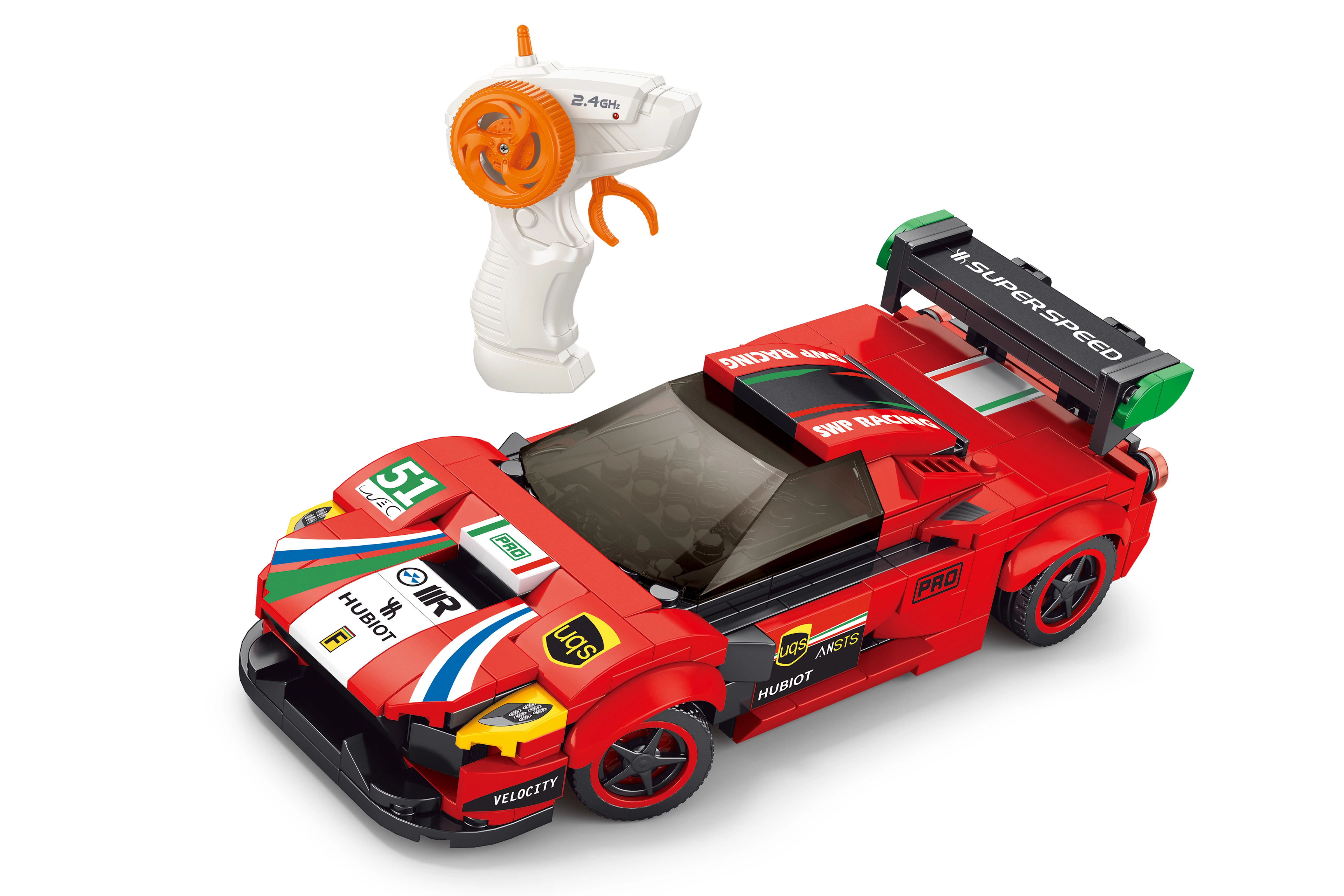 Този креативен конструктор ще зарадва малки и големи почитатели на техниката. Сглобете детайлен червен състезателен автомобил с дължина приблизително 17 см и го управлявайте с удобното пистолетно дистанционно. С честота 2.4 GHz ще се радвате на стабилен сигнал и плавно управление без смущения.
