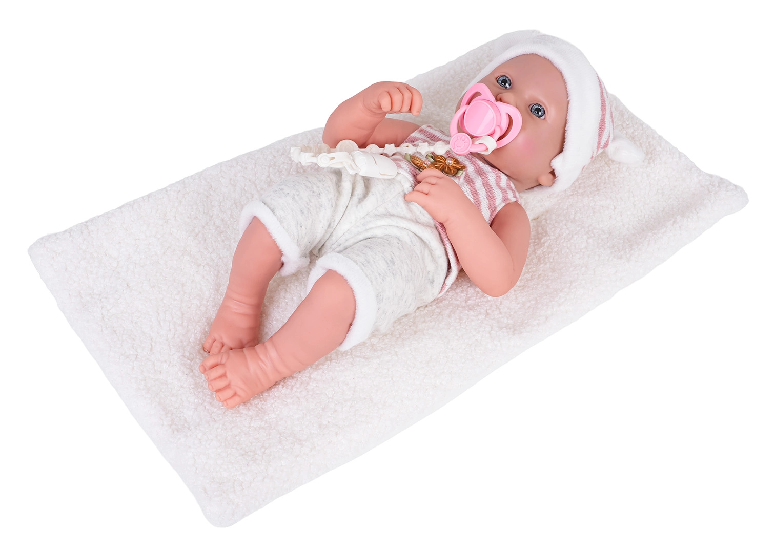 Тази реалистично изработена бебешка кукла е чудесен избор за въображаема игра на грижи. Благодарение на детайлите по лицето, приятните материали и подвижните крайници изглежда като истинско бебе и подпомага развитието на емпатия и фината моторика.