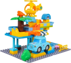 Тази голяма строителна игра позволява на децата да построят собствена полицейска станция с пързалка, рампи и площадка за кацане на хеликоптер. Лесно свързващите се кубчета държат здраво заедно и благодарение на ясните цветове естествено стимулират детското въображение и концентрация.