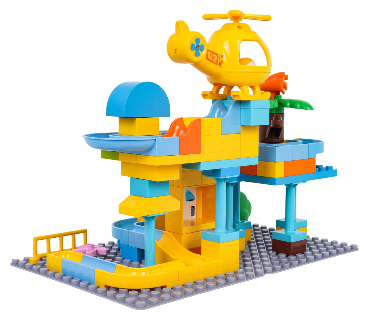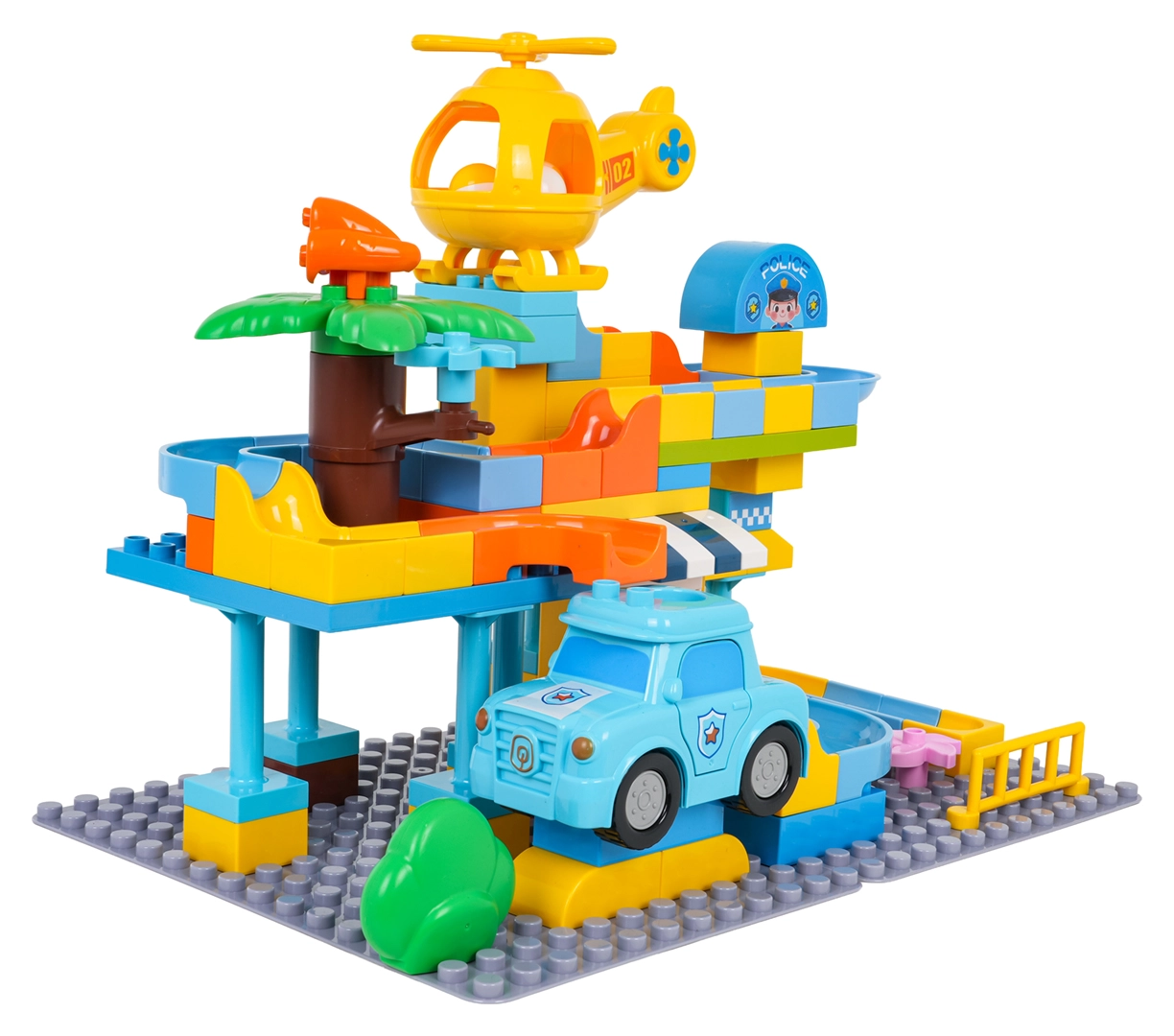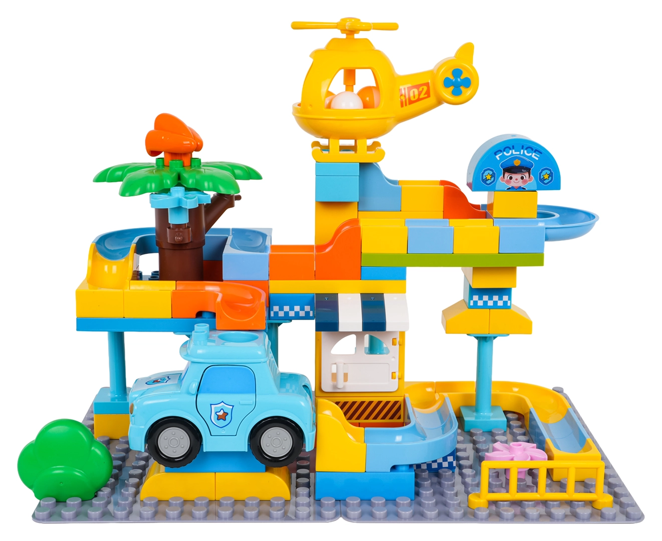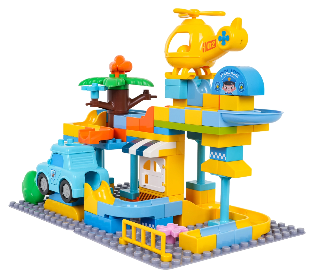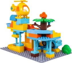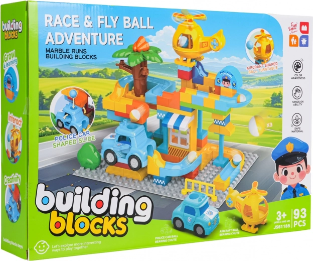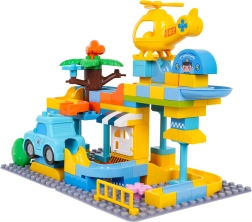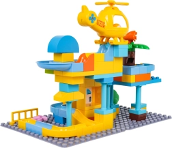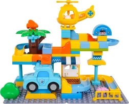 Пъстра строителна игра полицейска станция за деца от 3 години носи креативно забавление с лесно свързване на кубчетата и стабилна конструкция. В комплекта има полицейска количка, жълт хеликоптер, забавна пързалка и 3 топчета, които могат да прелитат през количката и хеликоптера. Идеална за развиване на въображението, моториката и творческото мислене.