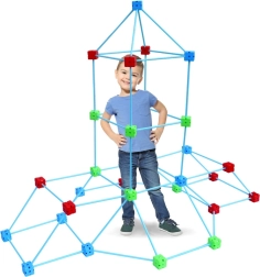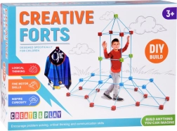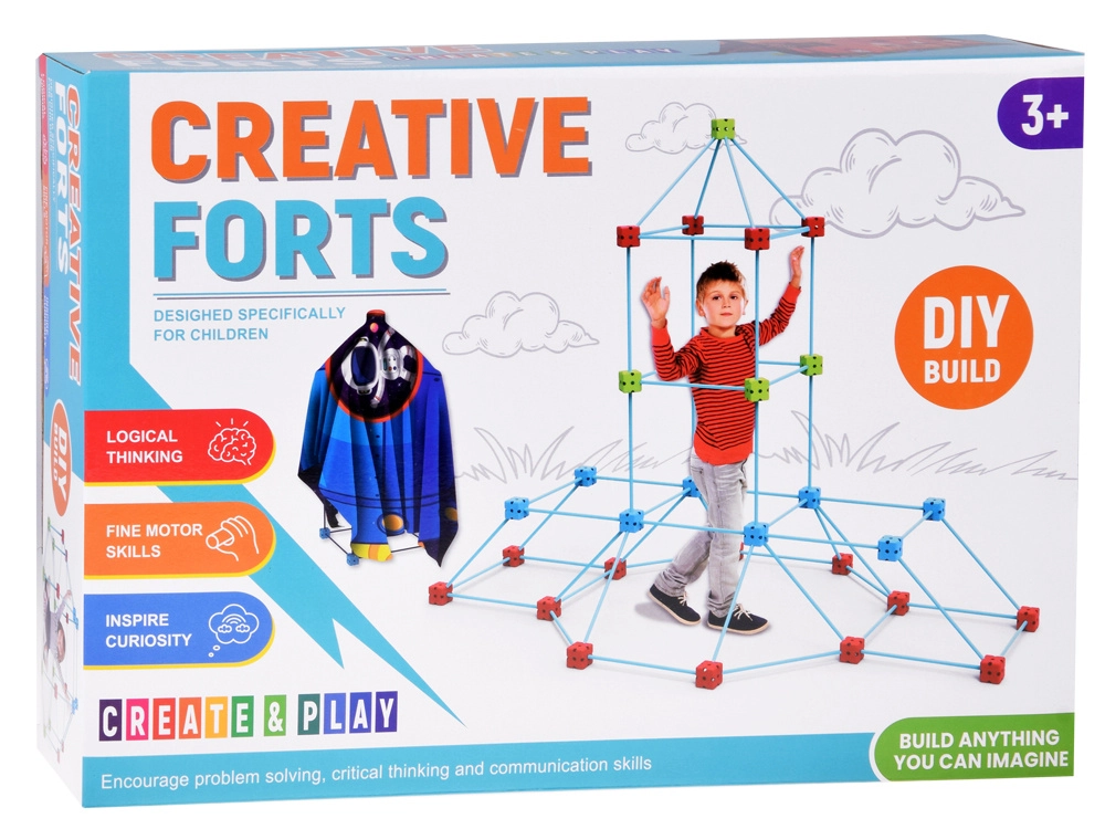 Открийте безкрайно забавление с този голям комплект строителни сламки и блокчета! Децата лесно ще построят форт, къщичка, кула, иглу и собствена тайна база. Леки пръчици и здрави многотворови конектори осигуряват стабилни конструкции, а покривалото с принт превръща рамката в уютна палатка. Мрежестата торбичка улеснява съхранението. Идеален за развитие на креативността, пространственото мислене и фината моторика.