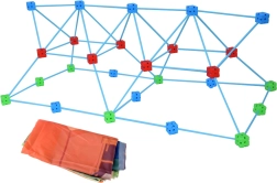 - Пръчици: светлосини; конектори: червени, зелени, сини