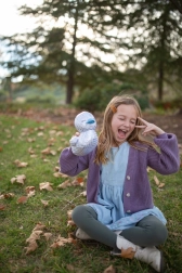 Веселият дизайн и приятелското изражение подпомагат развитието на фантазията и спомагат за успокояване при заспиване. Здравите шевове и качествената пълнежна материя запазват формата дори при чести прегръдки.