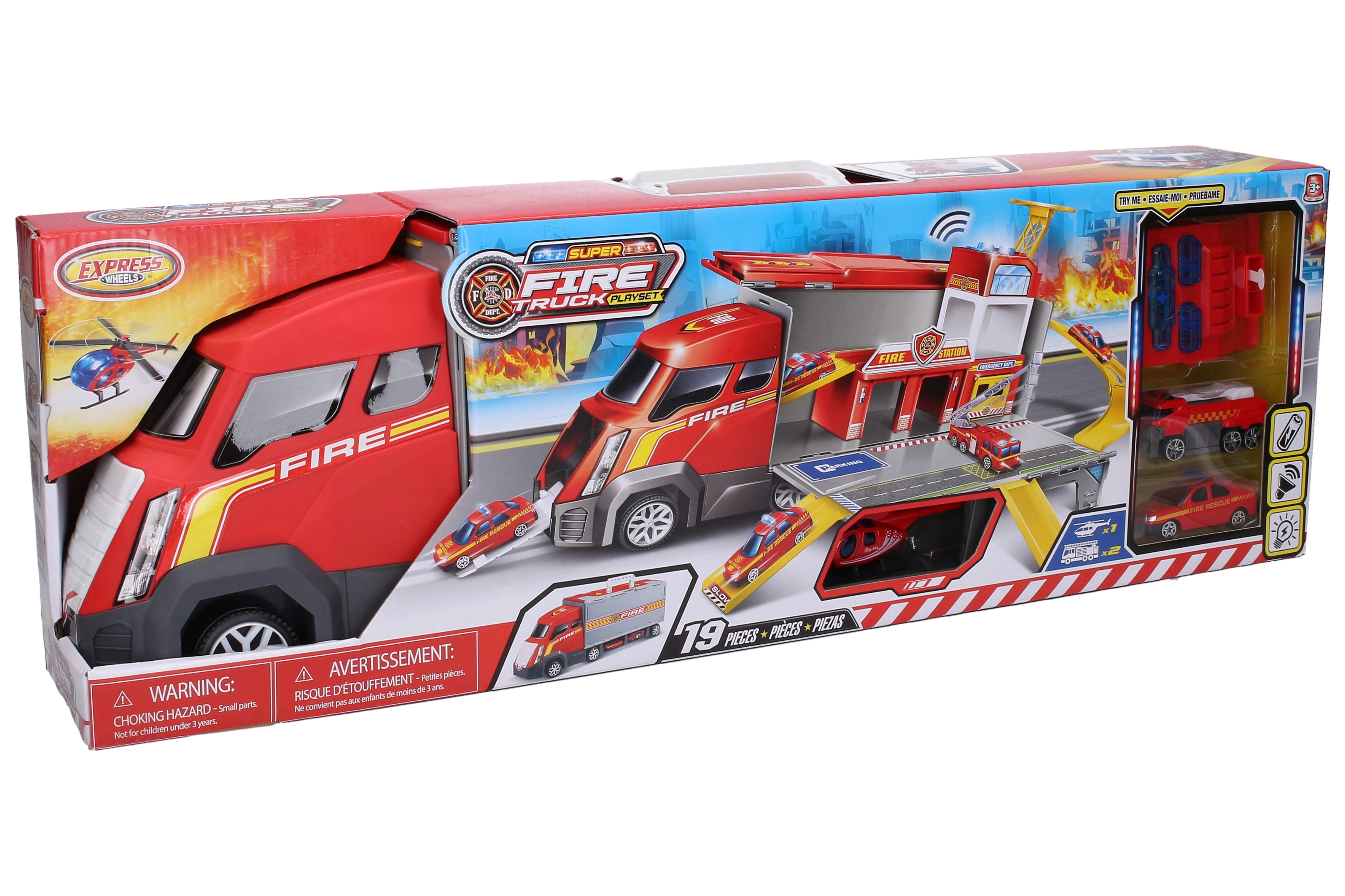 Този впечатляващ камион при отваряне се превръща в цяла пожарна база. Децата ще се забавляват със спасителни сценарии, планиране на акции и транспортиране на оборудване. Благодарение на светлинните и звуковите ефекти играчката изглежда реалистично и ще впечатли всички малки фенове на пожарникарите.