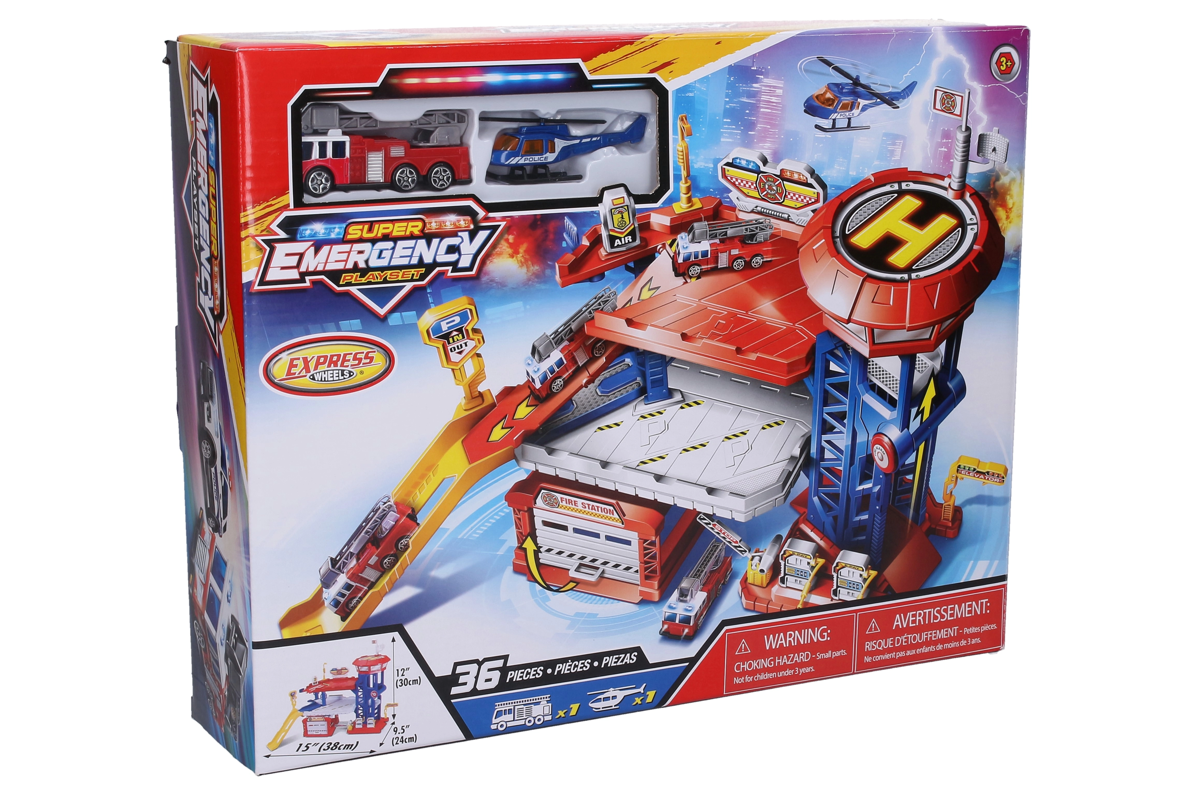 Страхотна пожарна станция за малки спасители, предлагаща двуетажен гараж с дължина 38 см и множество функции. Част от комплекта са пожарна кола, хеликоптер, функционален асансьор, рампи и отваряеми врати. Не липсват стикери и илюстрирано ръководство за лесно сглобяване.