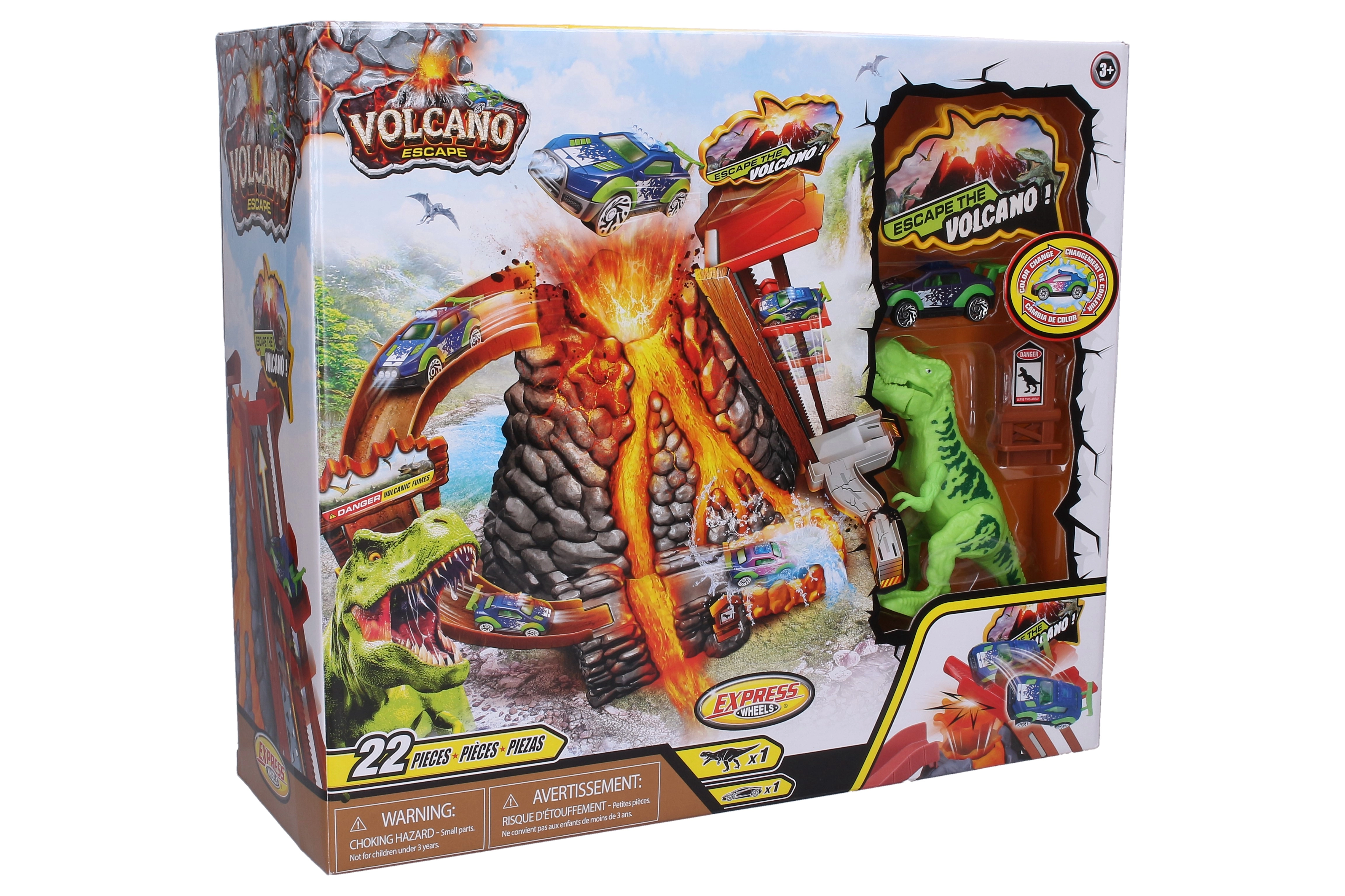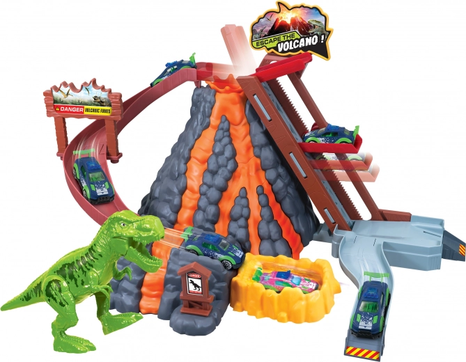 Изживейте екшън каране с автодраха с вулкан и количка, която променя цвета си според температурата на водата. Включени са асансьор, спускане към кратера, изтегляща се лава и водна вана за моментална смяна на цвета – топлата вода променя цвета, студената го връща обратно.