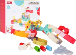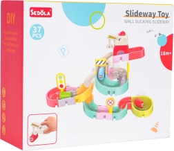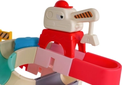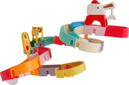 Забавна водна писта за ваната с вакуумни вендузи превръща всяко къпане в състезание. Благодарение на 37-те части децата ще построят цветна пързалка, по която миниавтомобилчетата се спускат под струята вода. Силните вендузи осигуряват стабилно закрепване върху гладки повърхности, а безопасните материали и ярките цветове насърчават радостта от откриването и развитието на моториката.