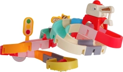 Цветните, взаимно свързващи се елементи и пътните аксесоари развиват фината моторика, въображението и разбирането за причинно-следствени връзки.