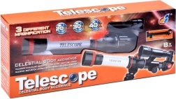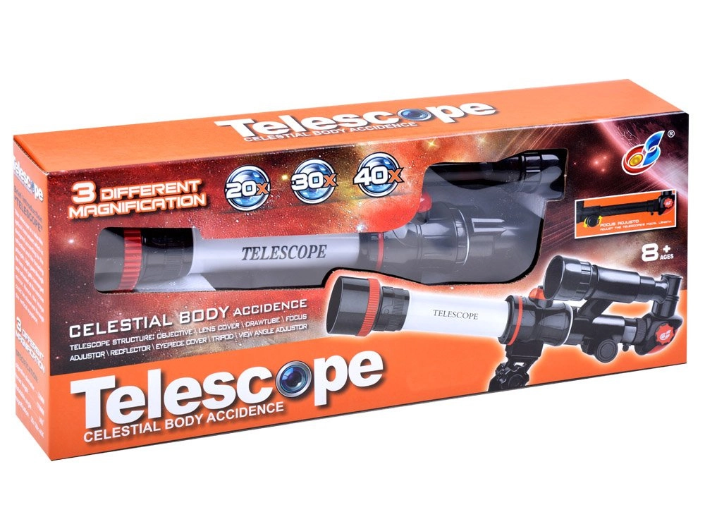 Открийте нощното небе с лек и лесен за управление детски телескоп на статив. Предлага сменяеми окуляри с увеличения 20×, 30× и 40×, висок контраст на изображението и добро цветопредаване. Благодарение на диагоналната призма наблюдението е удобно, компактният статив осигурява стабилност, а затворената тръба предпазва оптиката от прах. Отличен избор за първите стъпки на малките астрономи и за наземни наблюдения.