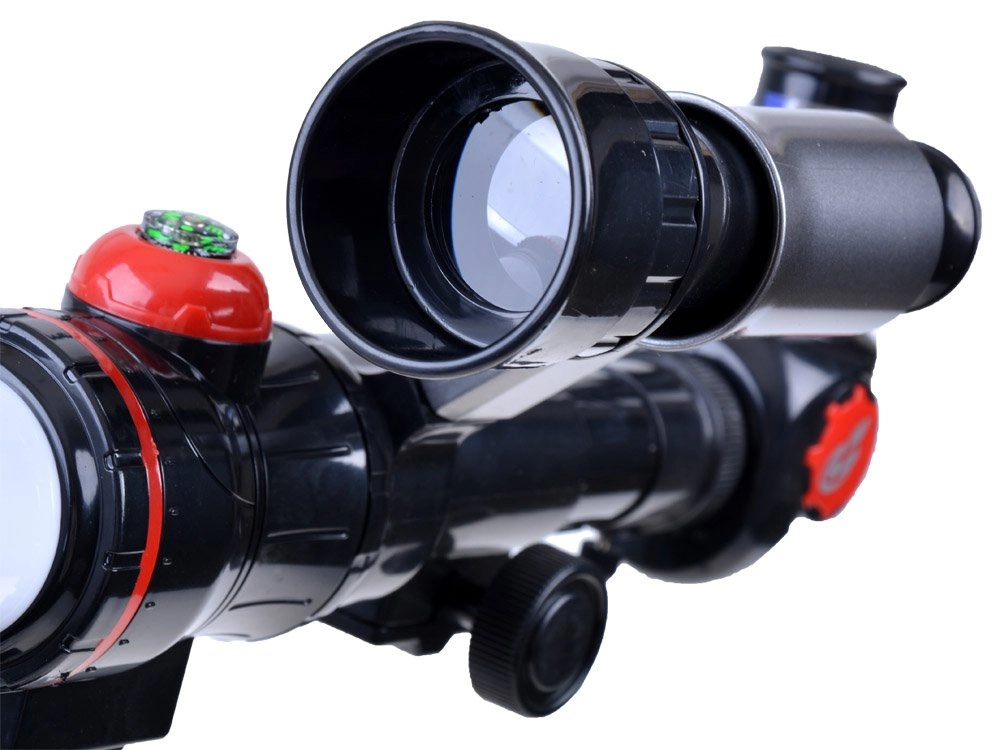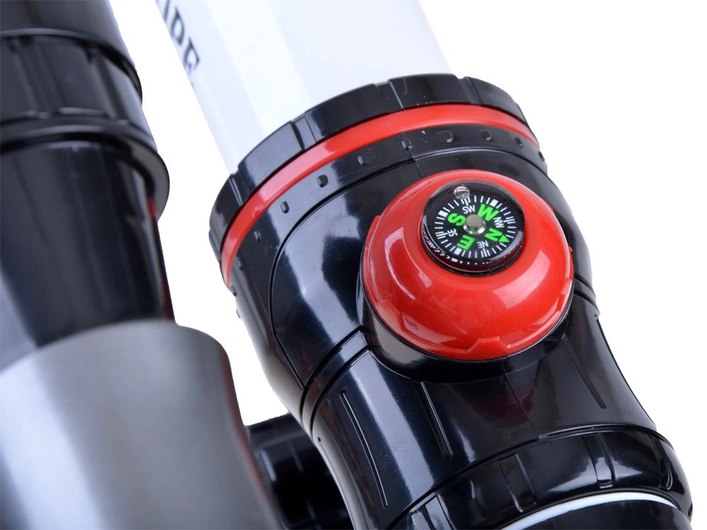 - телескоп, 3× окуляр, диагонална призма, мини компас, статив