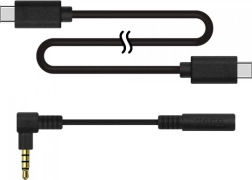 - Камерна единица, база (стойка във форма на варп тръба), USB‑C към USB‑C кабел, 3,5 мм стерео адаптер с прав ъгъл