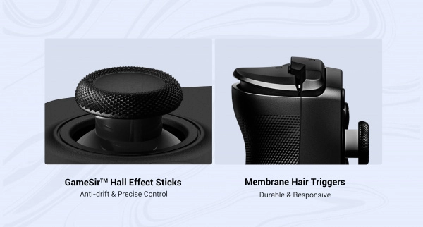 Лекият и мощен GameSir X5 Lite (около 135 g) издига мобилния гейминг на по-високо ниво. Директното кабелно свързване през USB‑C осигурява практически нулево закъснение, така че всяко действие е прецизно и мигновено. Hall ефект аналоговите джойстици предлагат плавен 360° диапазон, висока издръжливост и постоянна точност без дрифт.