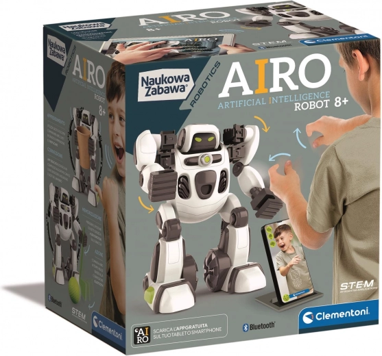 Robot AIRO е идеалният вход към света на модерните технологии. Децата сами сглобяват робота, изследват работата на сервомоторите и електрониката, а след това го управляват чрез приложение на смартфон или таблет. AIRO може да разпознава жестове, да реагира на глас и да се учи на нови движения, като по този начин насърчава креативността и техническите умения.
