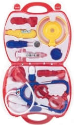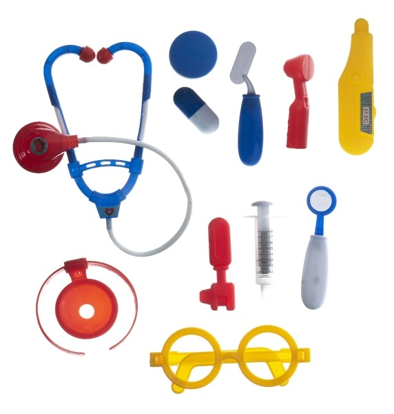 Стетоскоп, термометър, спринцовка и други цветни инструменти вдъхновяват за реалистична и забавна игра, която развива въображението и общуването.
