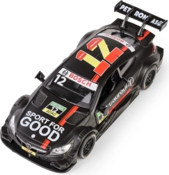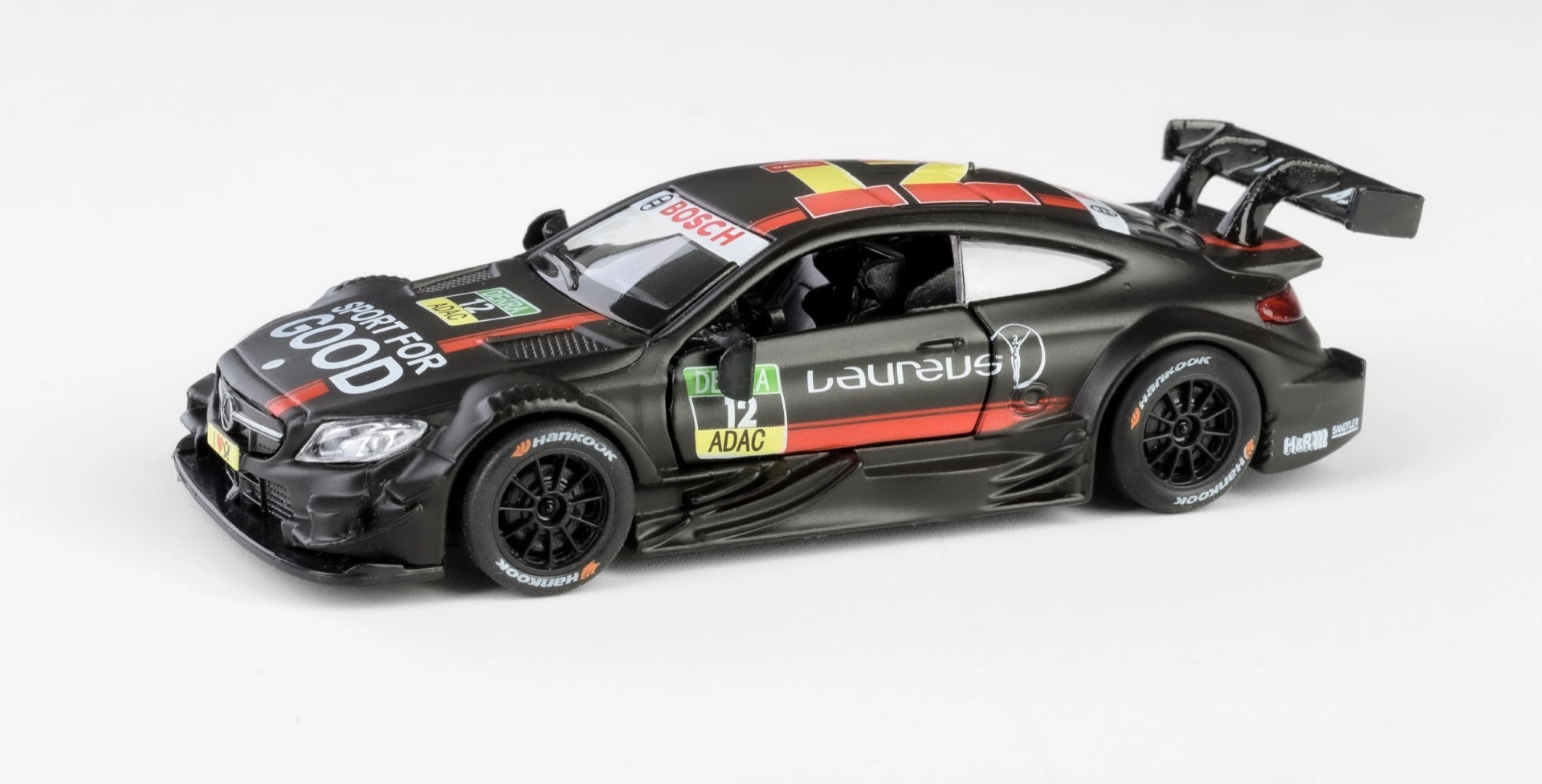 Насладете се на автентично изживяване с модела на състезателния автомобил MERCEDES-AMG C 63 DTM в елегантен черен цвят. Мащаб 1:43 и детайлно проработен интериор и екстериор ще зарадват всяко око на фен на моторните спортове. Благодарение на функцията pull-back моделът след издърпване лесно потегля напред, а отваряемите странични врати подсилват реалистичността както в игра, така и при експониране.