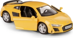 Лицензираният модел AUDI R8 2019 в ярък жълт цвят вярно улавя иконичните линии и пропорции на оригинала. Благодарение на отварящите се врати ще надникнете в детайлно изпълнения интериор. Обратният механизъм на навиване осигурява пъргава езда напред след леко дърпане назад.