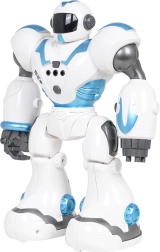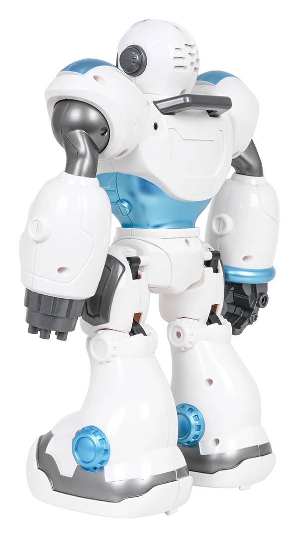 Забавен и умен спътник за деца от 3 години: многофункционалният робот U-ICTORY в син цвят. Той може да ходи, завива, движи ръцете, танцува, възпроизвежда мелодии, разказва истории и дори задава въпроси и отговаря. Управлението става с 2,4 GHz дистанционно, роботът е програмируем и има подсветени очи. Презареждащата се батерия 3,7 V е част от комплекта.