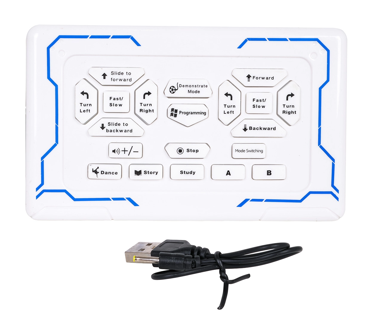 - робот, дистанционно управление, USB кабел за зареждане, инструкция