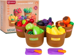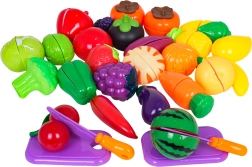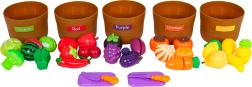 - плодове и зеленчуци с велкро, 5× кошничка за сортиране, 2× дъска, 2× нож