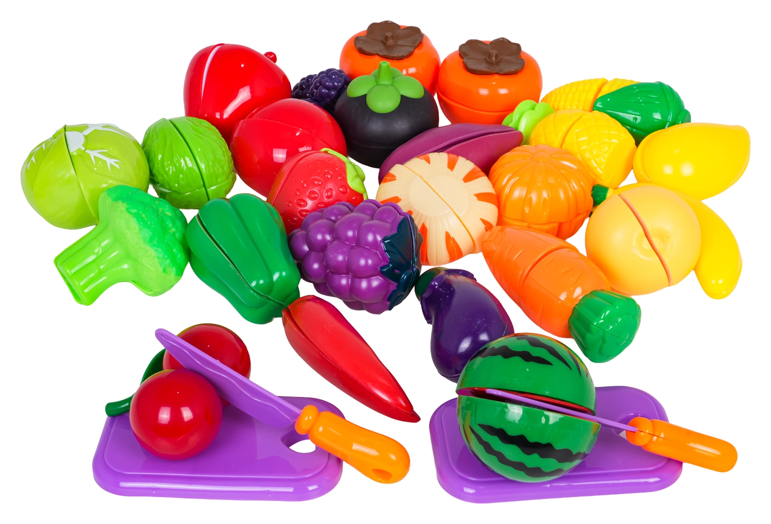 - Реалистични плодове и зеленчуци: банан, лимон, царевица, ананас, домат, ягода, морков, патладжан, салата, чушка и други