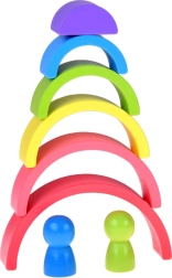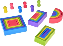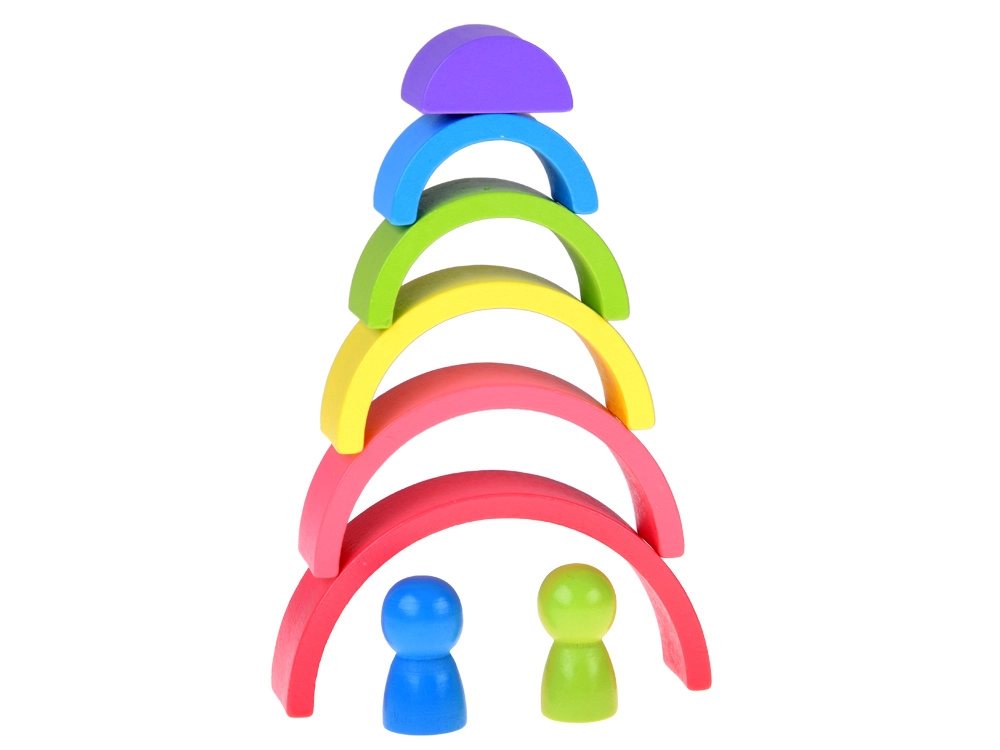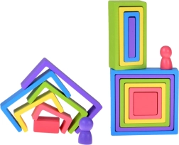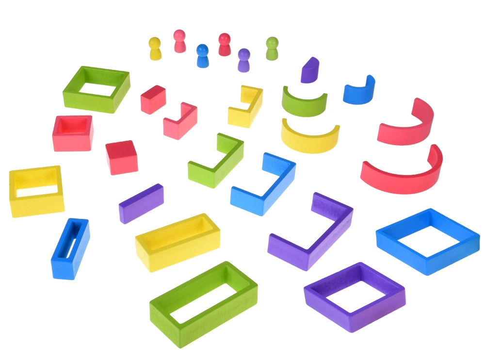 Дъги, рамки, мостове и други форми могат да се подреждат, вмъкват една в друга и балансират. Децата тренират фината моторика, а ученето протича естествено чрез игра.