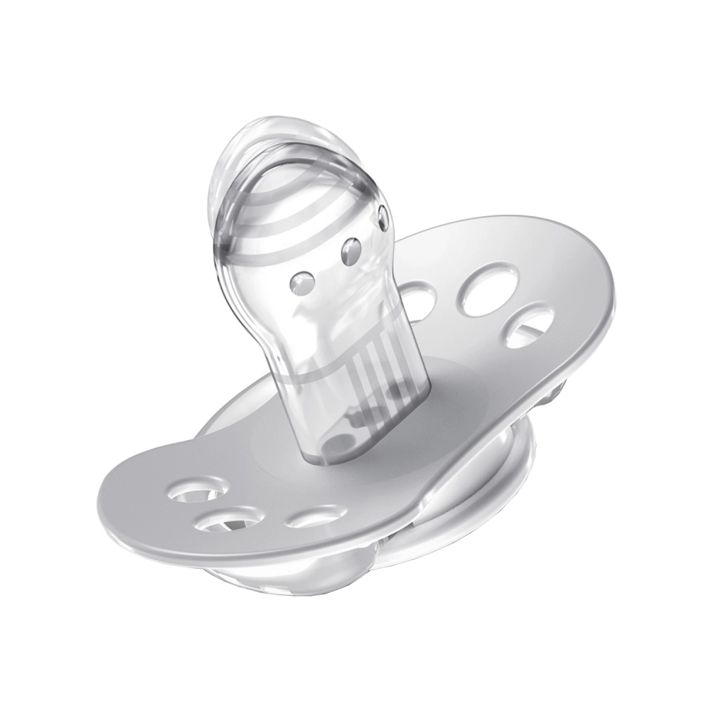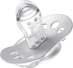 Хомогенният силикон при сукане ритмично се свива и разширява. Сплесканият, симетричен форма подпомага правилната работа на езика и свободното затваряне на устата.