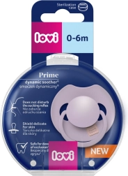 Биберонът LOVI PRIME е разработен съвместно със специалисти така, че да не нарушава естественото развитие на сукането, захапката и речта (при спазване на ортодонтските и логопедичните препоръки). Динамичната биберона от силикон с различна дебелина се разширява и свива естествено според ритъма на сукане, което подпомага запазването на кърменето. Симетричният връх, вдъхновен от формата на зърно, пълно с мляко, дава на детето познато и успокояващо усещане.