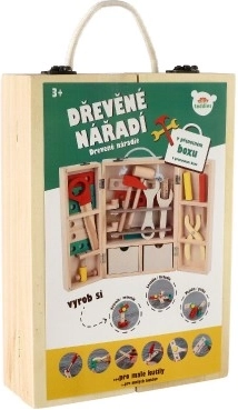 Открийте качествения дървен куфар с инструменти, който позволява на децата безопасно да имитират света на възрастните. В комплекта ще намерят отвертки, чукче, ключове, гайки, винтове, ъгломер, линийка, трион и други аксесоари. Всичко е подредено в здрав куфар с дръжка за лесно пренасяне.