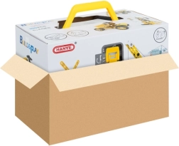 Всички части са безопасно съхранени в прозрачна кутия със закопчалка и жълта дръжка. Лесно пренасяне, ред без изгубени елементи – идеално за дома и за път.