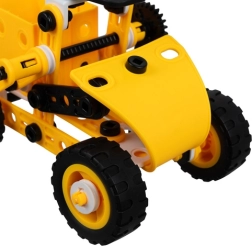 Сглобете различни модели с наистина движещи се колела и подвижни части. Децата упражняват логика, координация и техническо мислене при реално завинтване.