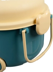 Целият комплект е прибран в мобилна кутия с дръжка. След игра всичко бързо се подрежда и лесно се пренася – у дома, на почивка или в детската градина.