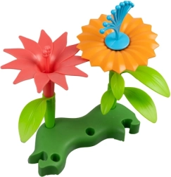 Този цветен строителен комплект дава на децата възможност да подреждат стъбла, листа, венчелистчета и тичинки в оригинални цветни композиции. Благодарение на модулните части цветята могат постоянно да се пренареждат и разширяват, което развива творчеството и логическото мислене. Стабилните зелени подложки държат творбите здраво на място.
