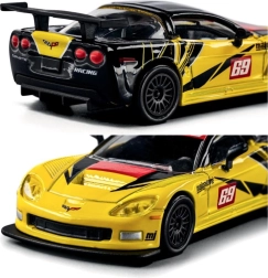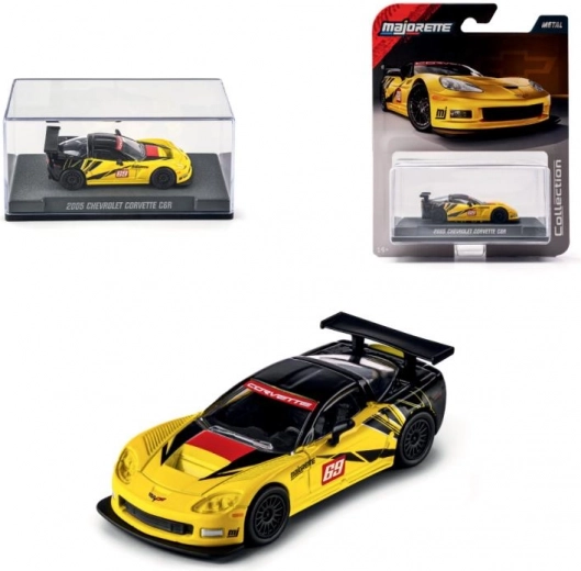 Стилен колекционерски модел на автомобил Chevrolet Corvette C6.R от 2005 г. в мащаб 1:64, който ще зарадва както децата, така и запалените колекционери. Предлага метална изработка, свободно търкаляне, отварящи се и подвижни части и функционално окачване. Дължината на модела е 7,5 cm.