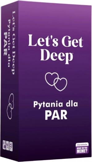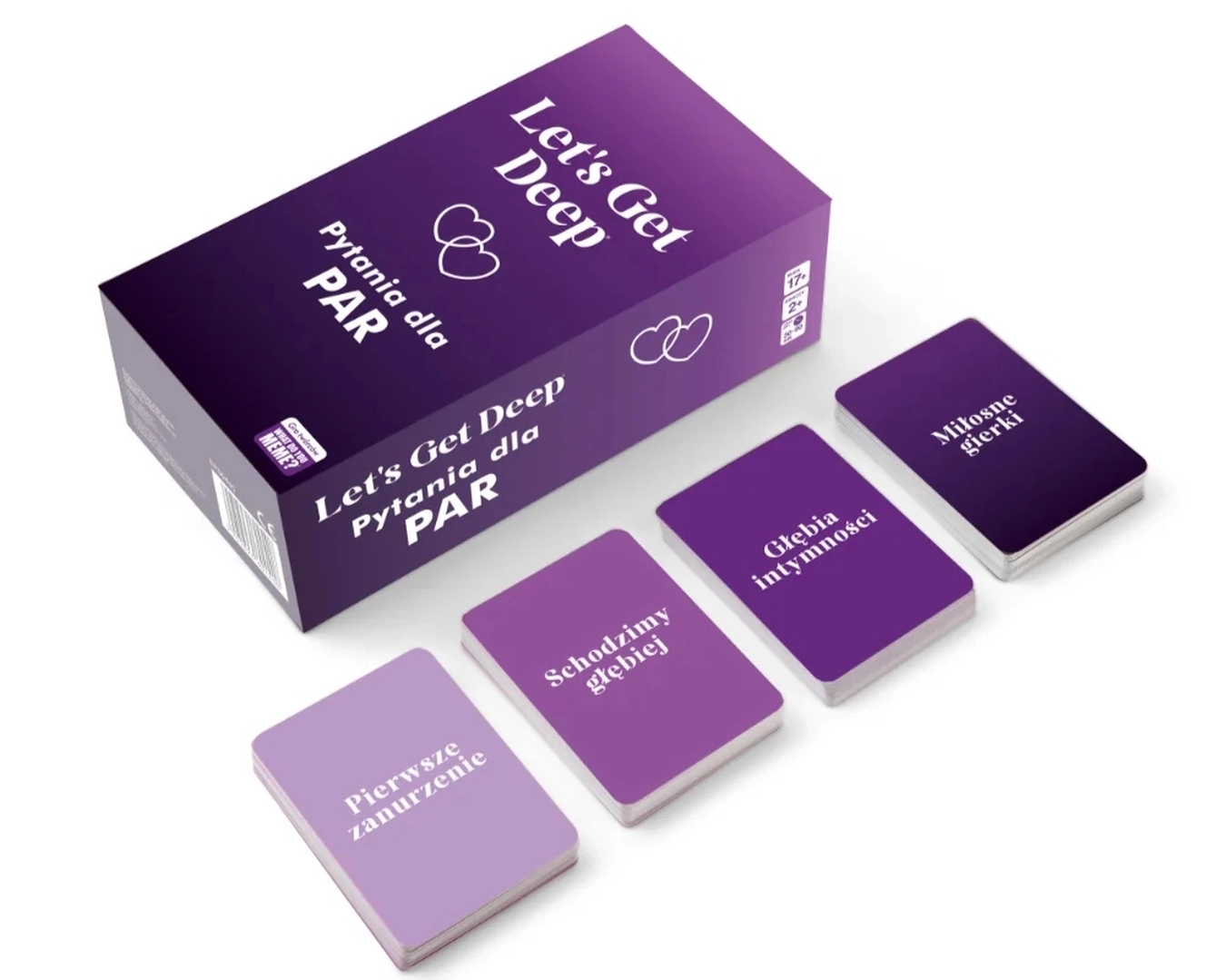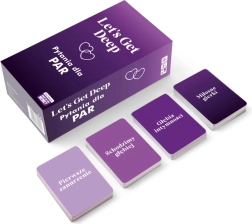 Играта Let's Get Deep е идеален избор за двойки, които искат да разнообразят общите моменти и едновременно да се опознаят по-добре. Картите са разделени в четири категории – Първо гмуркане, Да навлезем по-дълбоко, Дълбока интимност и Любовни игри – и постепенно ви превеждат от леки теми към по-интимни въпроси.