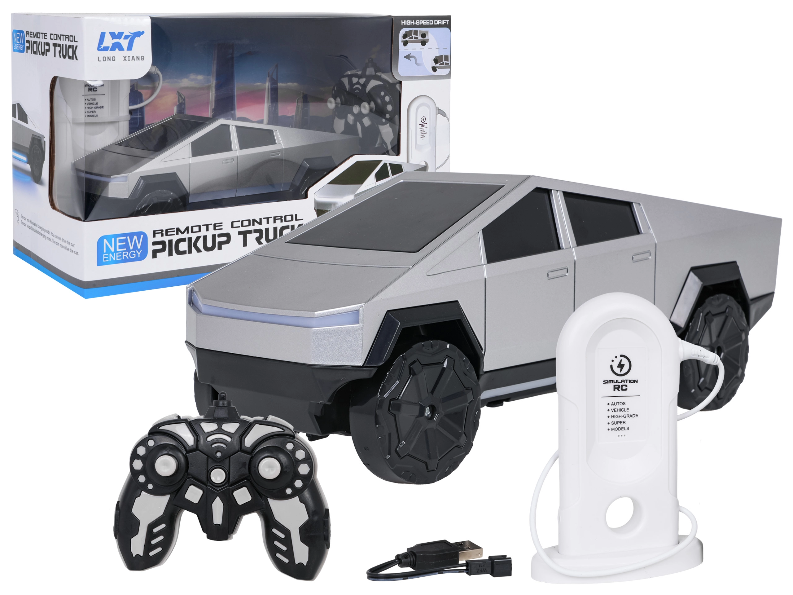 Сребърната RC кола Track се представя като стилен и издръжлив модел за ежедневни забавления. Благодарение на качествената изработка, осветление отпред, отстрани и отзад и големите гуми, тя осигурява плавно движение напред и назад, прецизно завиване и ефектен дрифт. Ергономичният контролер на честота 2,4 GHz гарантира надеждно управление без смущения.