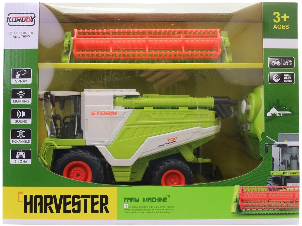 Този детски комбайн с дистанционно управление носи автентично фермерско забавление във всяка детска стая. Здравата конструкция от качествена пластмаса, детайлно изработената кабина и ярката жътварска приставка насърчават креативната игра и развитието на фината моторика.