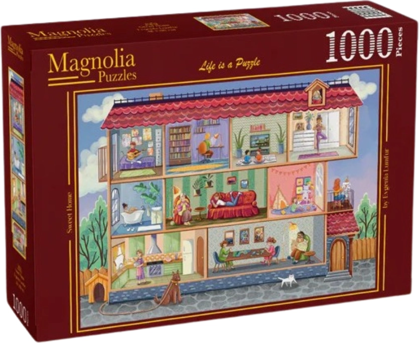 Открийте спокойствие и уют със стилния пъзел Magnolia с мотив „Домът, сладкият дом“. Благодарение на 1000 прецизно изрязани части подреждането е прият предизвикателство за начинаещи и опитни любители на пъзели. Идеален за релакс след натоварен ден, за споделени моменти със семейството и като елегантна декорация след завършване.