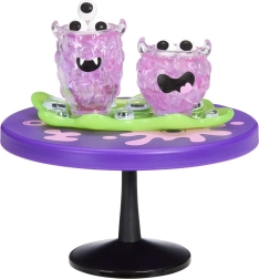 След смесване на съставките остави творението поне 5 минути да се втвърди на директно слънце или под UV светлина 365 nm. След това е готово за изложба – например като мини тиквена сцена, страховита къща или призрачна напитка. Всяка капсула е blind box, така че отварянето винаги е забавна изненада.