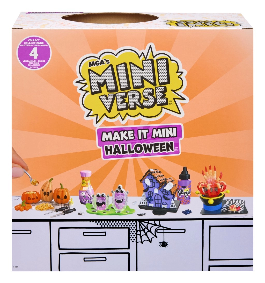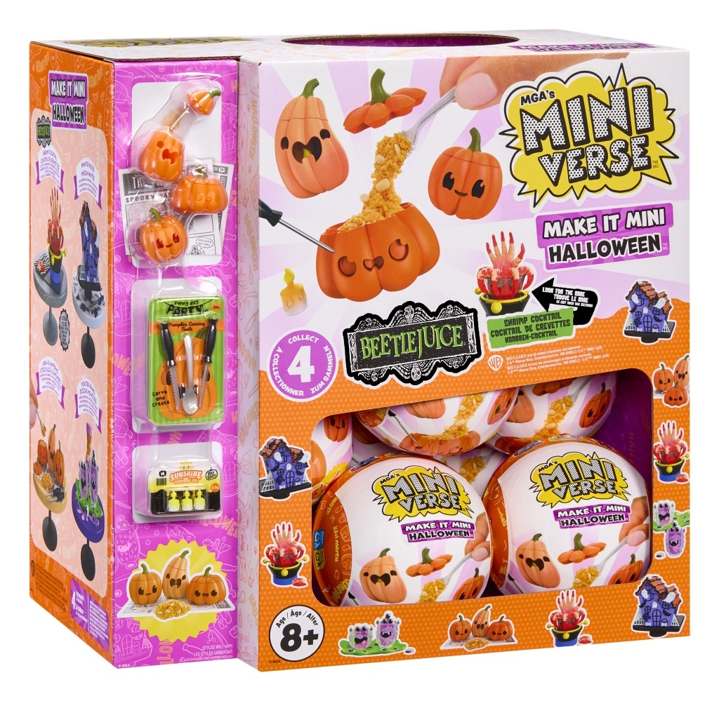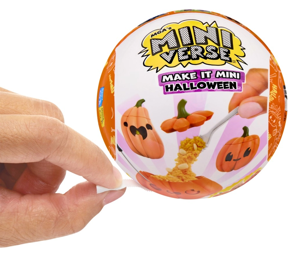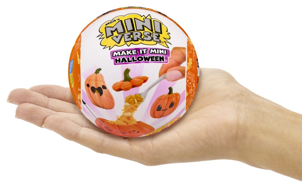 Всяка кръгла капсула MINI VERSE е запечатана, така че никога не знаеш какъв страховит сет ще получиш – тикви, напитки, декорации и още.